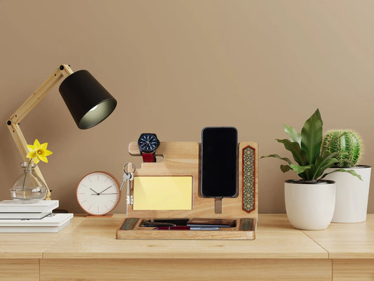 Premium Mosaic Desk Organizer & Phone Stand, Inlaid mosaic Art, Rubber Wood